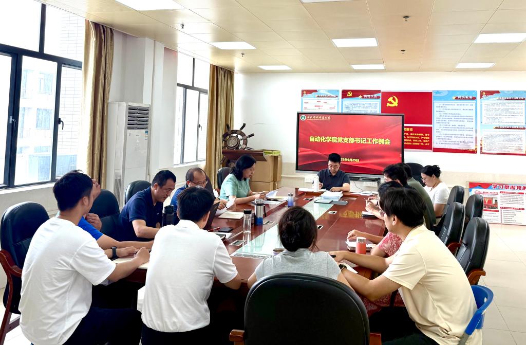 9月29日,自动化学院召开党支部书记工作例会。学院领导班子成员、各党支部书记参会,受学院党委杨延军书记委托,学院党委副书记、院长岑健主持会议。会议总结了深入贯彻中央八项规定精神学习教育情况,并对 2025 年下半年党建工作进行了部署。