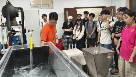 在中国科学院广州能源研究所,同学们首先参观了新能源和可再生能源科普基地,了解了生物质能、太阳能、海洋能、地热能、可燃冰等能源形式以及固废利用、储能等节能技术。通过现场讲解和交流互动,同学们对能源和节能的工作原理、应用场景、技术挑战有了系统认识。随后,同学们前往海洋能研究室和储能技术研究室,现场观摩了波浪能装置和冰浆蓄冷系统,直观感受了鹰式吸波浮体捕获波浪能发电的过程以及冰浆生成过程和触感。现场气氛活跃,同学们表现出浓厚的兴趣。