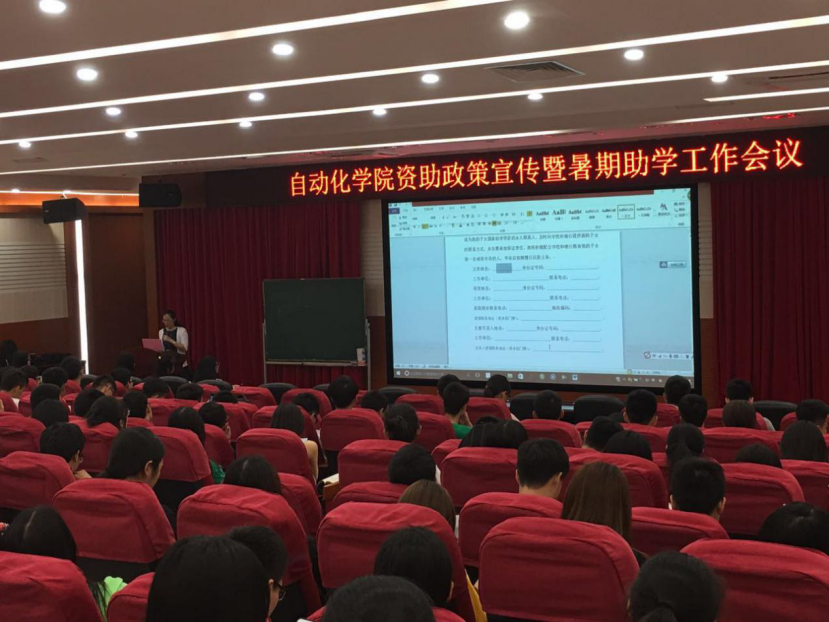 为了让自动化学院学生了解国家资助政策,同时为了下半年助学工作顺利开展,2017年6月26日12:30在三教报告厅召开自动化学院资助政策宣传暨暑期助学工作会议,辅导员汤珊珊老师主持召开了此次会议,助学中心所有成员、助学委员和全体家困生参加了本次会议。
