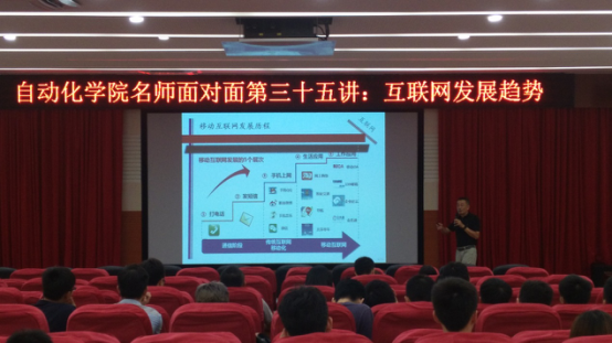 为加强同学们们对互联网发展的了解,2017年6月15日,学院邀请到郑巍老师为作为名师面对面第三十五讲主讲人,为同学将讲解互联网的发展趋势,现场不仅吸引了自动化学院的同学们观看,更吸引了不少其他学院的同学。