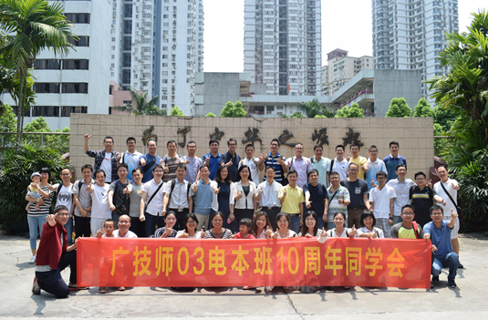 5月6日,阳光明媚,晴空万里。西校区迎来了近50位校友,他们就是03级电气工程及其自动化班(下文简称03级电本班)的老学长学姐们,从不同的城市和地区,纷纷回到阔别已久的母校,只为赴一场十年之约。到场的嘉宾还有自动化学院岑健院长、自动化学院前任书记黄锡炳书记、前任辅导员罗继全老师、现任辅导员汤珊珊老师。