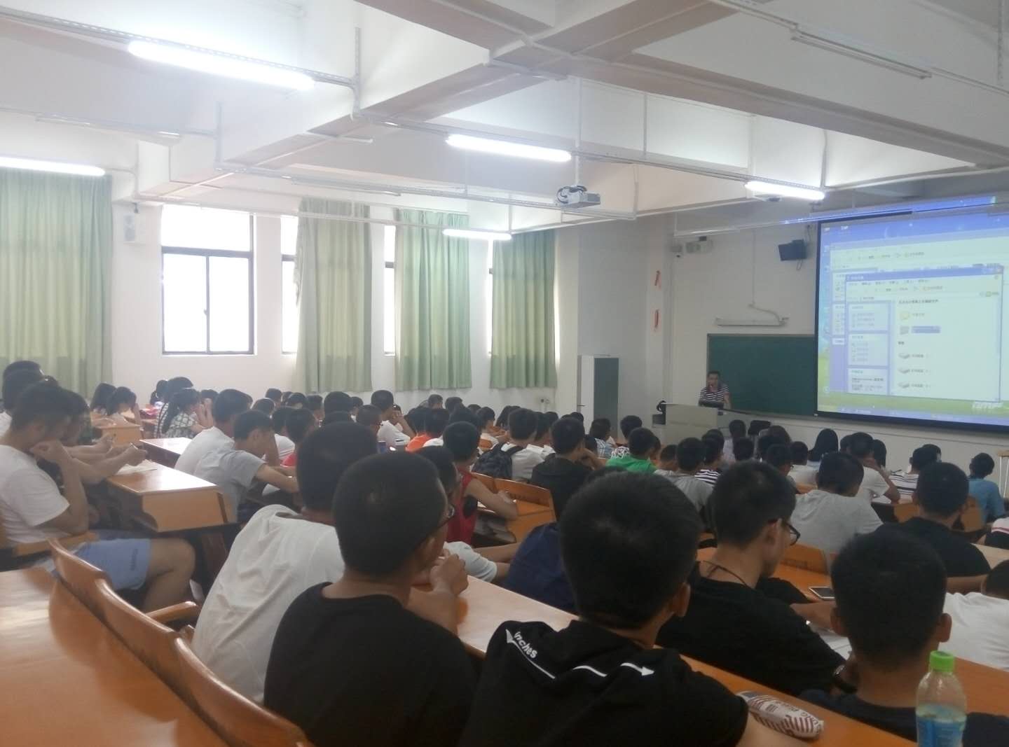 本次会议分成两个环节,一个是主讲老师通过PPT展示、数据分析、视频播放等形式,向同学们认真合理的分析了各个专业的发展方向与特点,详细的阐述了每个学科的主要内容和教学计划以及专业的培养目标。同时各位主任还告诫学生们:要从此刻起,确定新目标并为此而坚持不懈,还勉励大家要勤学好思,拼搏一段难忘的大学经历。第二个环节则是同学们向老师提出疑惑,老师答疑环节,各位同学积极发言提问,老师一一让同学们心中的谜团得以消散。