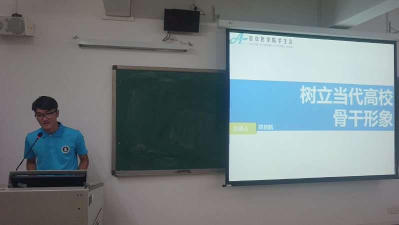 副主席郑启航和大家分享了他对于如何树立当代高校骨干形象的个人见解。当代高校骨干形象可分为内在素养和外在形象,在工作、生活、内在素质以及穿着仪表上他对干部们提出了一系列的要求,给干部们设立了一个形象标准,为干部们提升自我形象提供了方向。