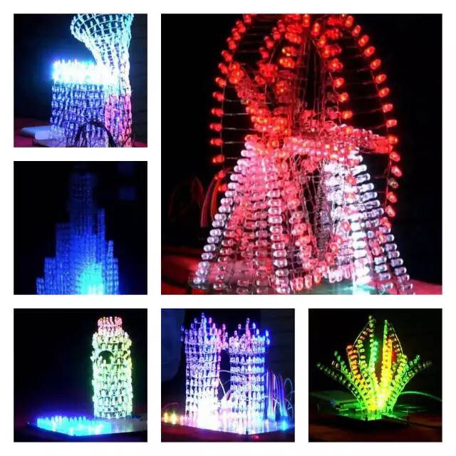 “爱迪生发明电灯点科技之光,同学们制作彩灯燃青春激情……”,彩灯节大赛在主持人抑扬顿挫的开场中开始了。此次比赛共有32支队伍参赛,每支队伍依次登台展示他们的绚烂彩灯。第一支参赛队伍的出场,立即聚焦了全场的目光,一个美轮美奂的闪烁着耀眼迷人的灯光宝塔呈现在所有人的视野中央。接下来,珠光宝映的方形平顶建筑大楼、交错纵横闪亮的广州小蛮腰、时快时慢变换色彩的圆型风轮、16种效果不断切换的旋旋塔的彩灯……选手们的彩灯一个比一个精致。在这个绚丽闪耀的舞台上,每一个队伍都在比拼着实力与创意,而他们的战场,却成就了一场视觉盛宴,让全场观众大饱眼福。