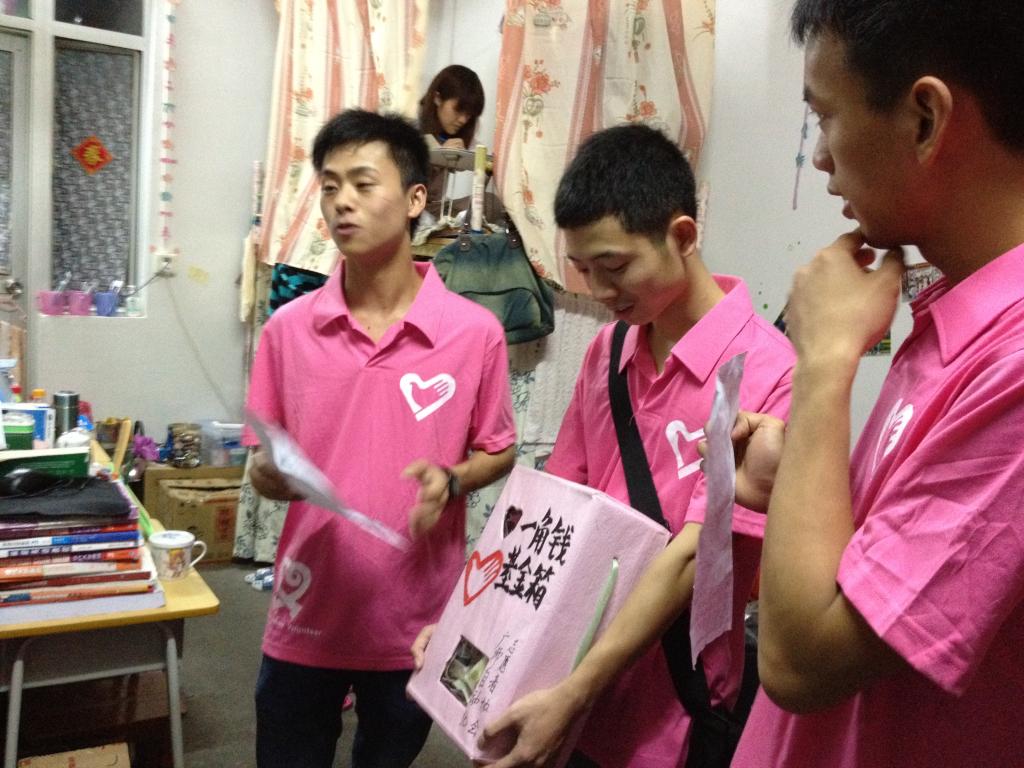 志愿者到宿舍宣传一角钱基金